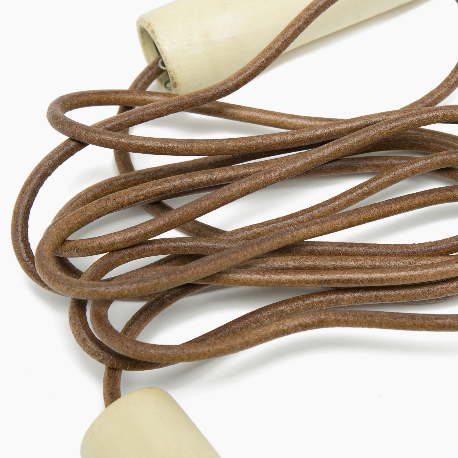 Cuerda de salto de cuero y mangos de madera ergonómicos para complementar tu entrenamiento.